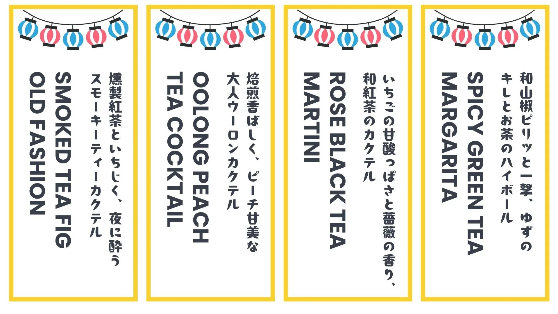 本イベントでは、10月に「Makuake」で予定しているクラウドファンディングに先駆け、静岡県産の高品質な茶葉を贅沢に使用したDIYティーカクテルキット4種をソーダ割りにして1杯700円(税込)で提供。一般販売前の商品を実際に味わえる、またとない機会です。